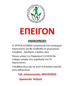 Στο πλαίσιο αυτός ο Σύλλογος Αγώνας Ζωής σε συνεργασία με τον Δήμο Καρπενησίου και την Περιφέρεια Στερεάς Ελλάδας στέλνουν για μια ακόμη χρονιά το μήνυμα της πρόληψης της έγκαιρης διάγνωσης στην Κεντρική Πλατεία Καρπενησίου.