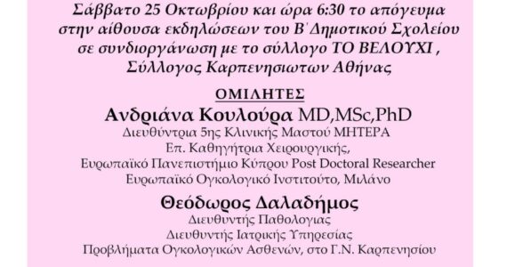 EΚΔΗΛΩΣΗ ΓΙΑ ΤΗΝ ΠΑΓΚΟΣΜΙΑ ΗΜΕΡΑ ΚΑΤΑ ΤΟΥ ΚΑΡΚΙΝΟΥ ΤΟΥ ΜΑΣΤΟΥ